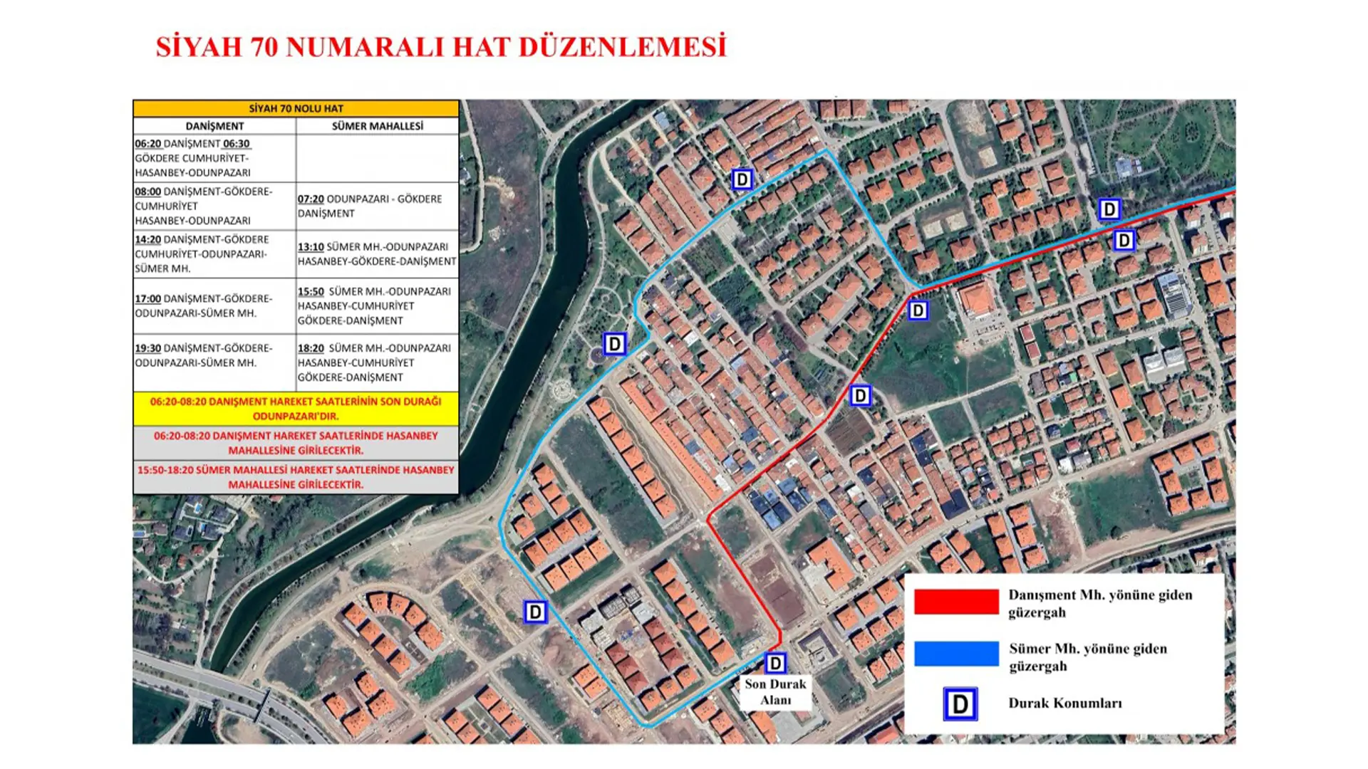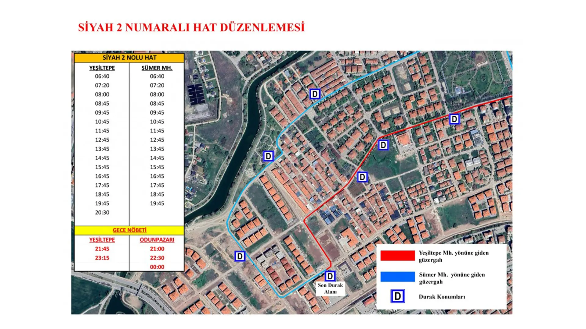 Yapılan düzenleme Siyah 2, Siyah 9 ve Siyah 70 numaralı hatları kapsıyor. Yeşiltepe, Otogar ve Danişment bölgelerine ulaşım sağlayan bu hatlar, artık Sümer Mahallesi’nin iç kesimlerinde yer alan Kızılyer mevkiine de hizmet verecek.