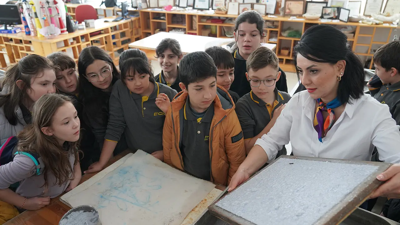 Öğrenciler, atık kâğıtların hamura dönüştürülme ve yeniden kâğıt haline getirilme süreçlerini yerinde inceledi. 2009 yılından bu yana faaliyet gösteren atölyede dikkat çeken bir uygulama da paylaşıldı: Belediyeye gönderilen çiçek buketleri çöpe atılmıyor, atık kâğıtlarla harmanlanarak kâğıt hamuruna katılıyor.